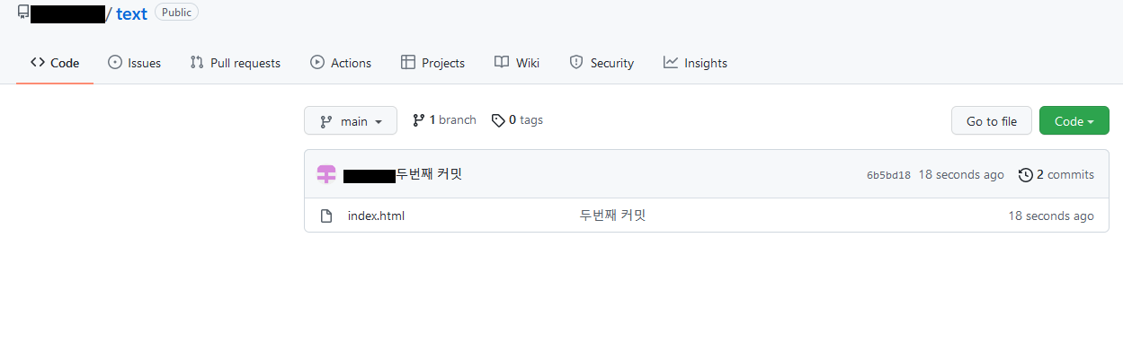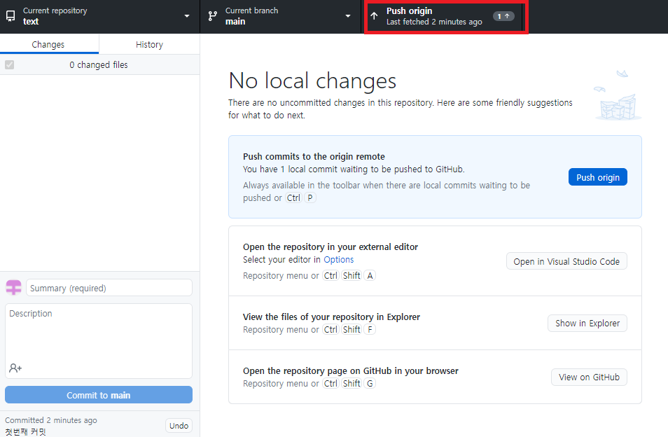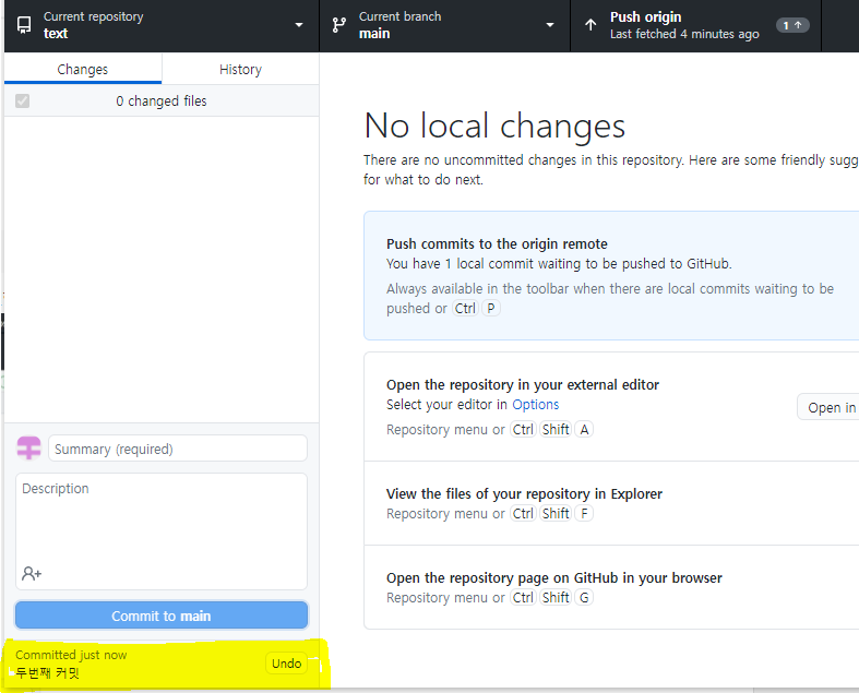 두번째 커밋부터는 상단에 커밋한 내용이 표시됩니다.