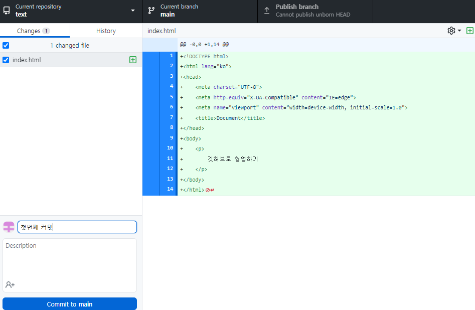 깃허브 데스크탑과 저장소의 연결이 끝났다면, 깃허브 데스크탑 협업방법에 대해 알아보겠습니다.