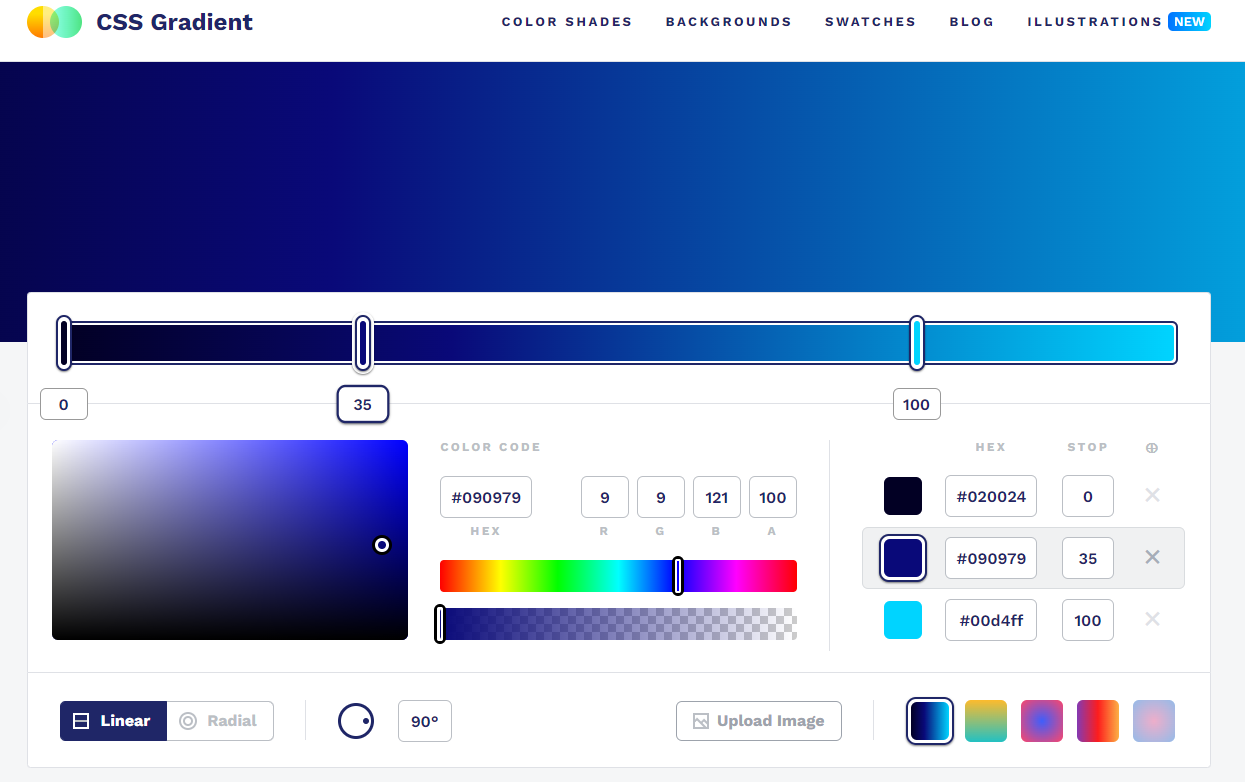As a free css gradient generator tool, this website lets you create a colorful gradient background for your website, blog, or social media profile.