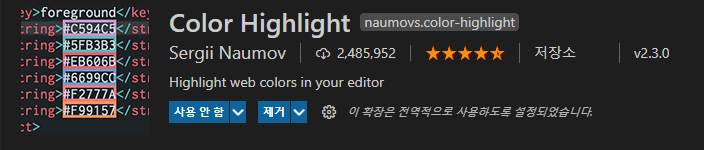 색상의 컬러를 배경색으로 보여주어 더 가독성있고, 수정이 편한 비쥬얼스튜디오 코드 확장프로그램이에요:)