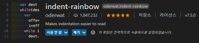 들여쓰기가 무지개색으로 보이는 확장기능입니다.