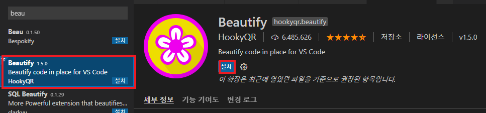 내부적으로 beautify 확장 기능을 통해 보기 좋게 정렬해주는 프로그램이에요!