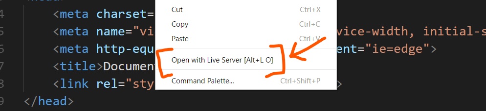 3.HTML 파일을 열고 편집기를 마우스 오른쪽 버튼으로 클릭하고 'Open with Live Server' 를 클릭합니다.