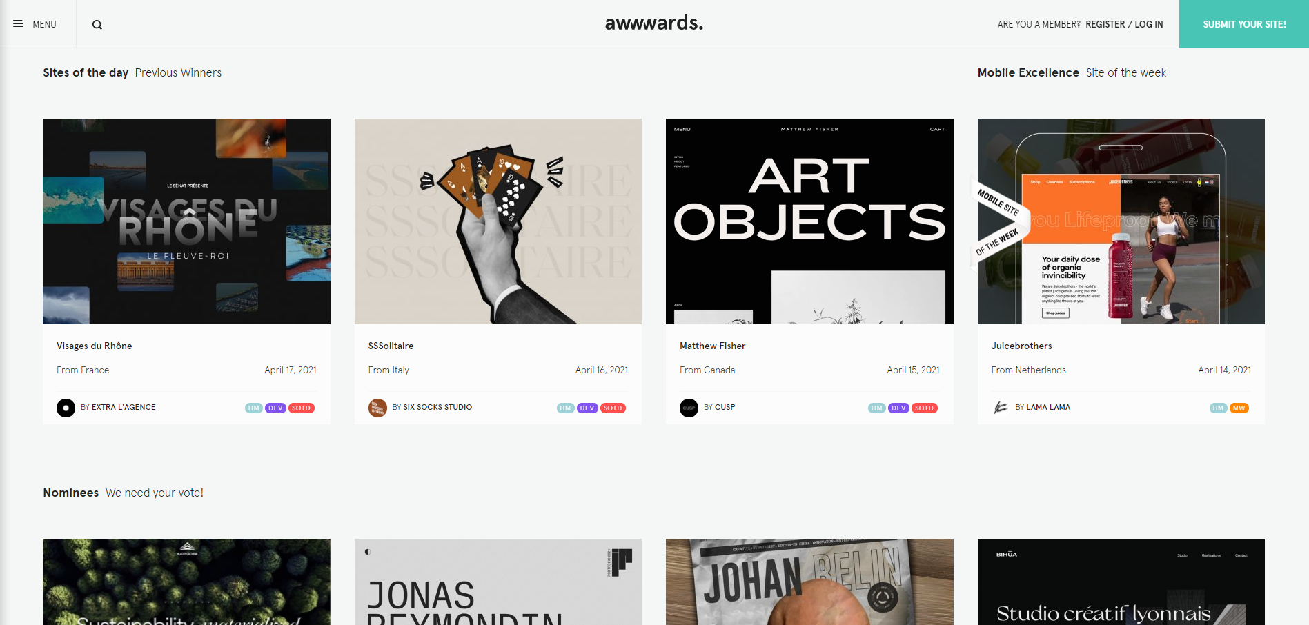 4. awwwards : www.awwwards.com/