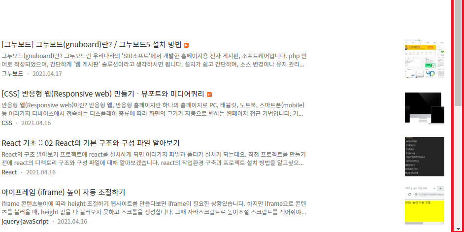 브라우저의 높이보다 콘텐츠가 길어질때, 브라우저 내에서 스크롤바가 생성됩니다.